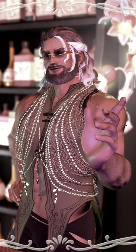 Name: Vulcan RavenstriderAge: 38Pronouns/Sexuality: He/They PansexualHobbies: Goldsmithing, thrill seeking, and a good drink.Greeting: "Allow me to make this night special for you, Darling."